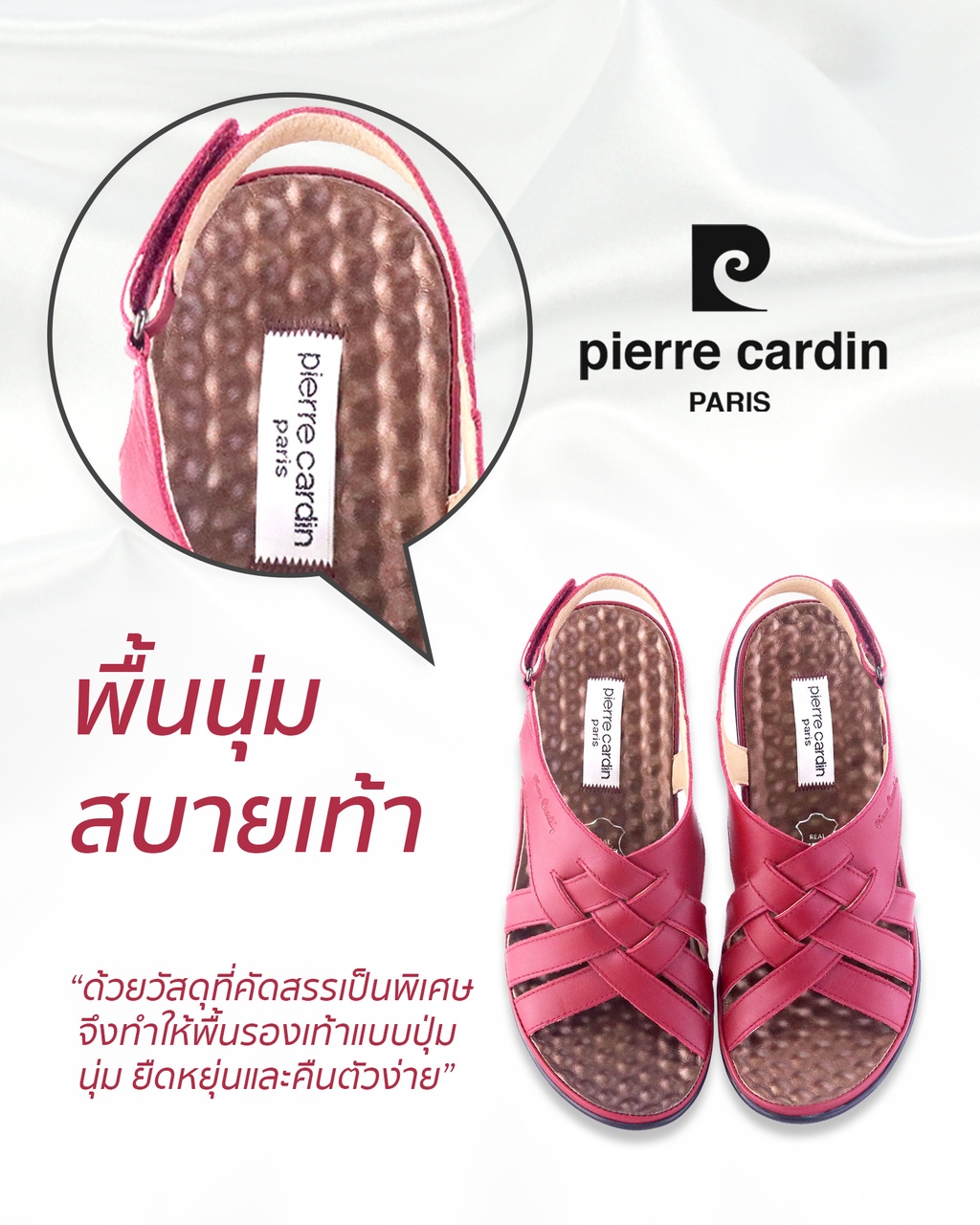 Pierre Cardin รองเท้าผู้หญิง เพื่อสุขภาพ นุ่มสบาย สวมใส่ง่าย ผลิตจากหนังแท้ สีแดง รุ่น 27WS445